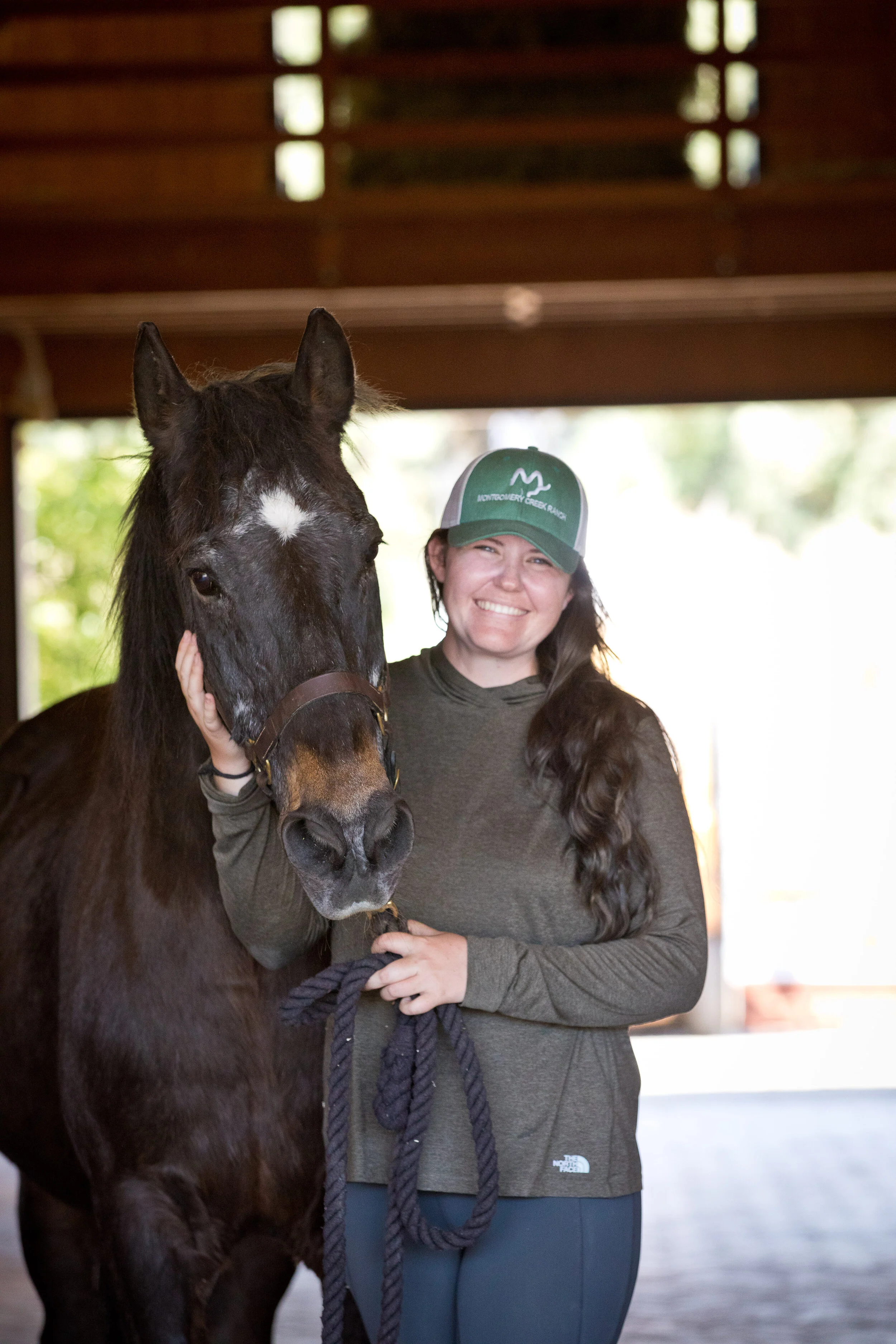 Brownie with MCR trainer Rachel, who saw him at auction. Photo by Tara Arrowood